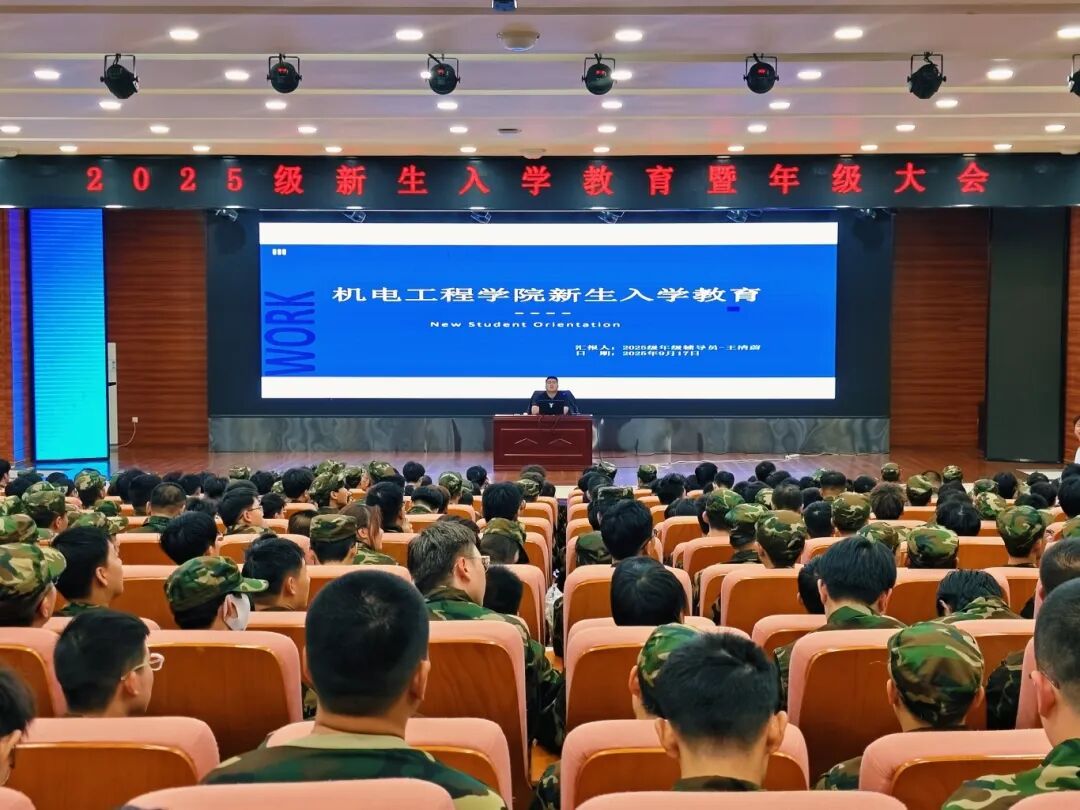 为帮助2025级新生快速适应大学生活,明确学业与生活要求,9月17日晚,机电工程学院在第二教学楼报告厅召开2025级新生入学教育暨年级大会。2025级辅导员王清蔚老师出席,学院全体本科新生参会。
